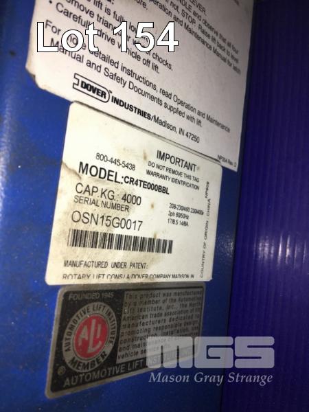 4 POST CAR HOIST, FORWARD LIFT MOD: CR4TEBEL CAP: 4000kg WIDE BODY 240V (HARDWIRED, TO BE DISCONNECTED BY ELECTRICIAN)