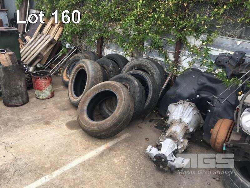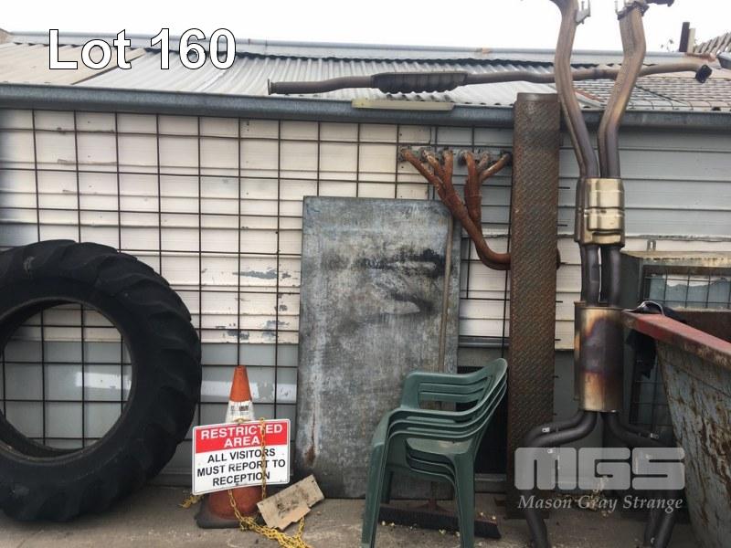 FORD ENGINE, 4 LITRE/6 CYLINDER (ALL FAULTS) AUTO TRANSMISSION, BTRA (ALL FAULTS) ASSORTED TAIL PIPES, EXHAUST SYSTEMS, STEEL SCRAP BIN ETC