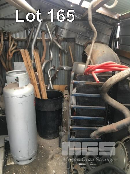 QUANTITY ASSORTED AUTOMOTIVE PARTS, EXHAUST PARTS, SUSPENSION COMPONENTS, MUFFLERS, TRANSMISSION, PAINTS ETC (NOT INCLUDING GAS BOTTLES)