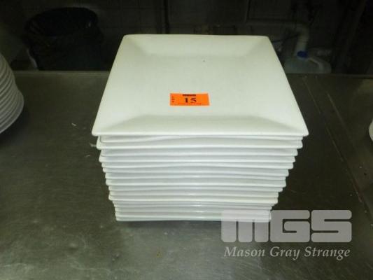 16 x WHITE SQUARE PLATES, 27 x 27cm