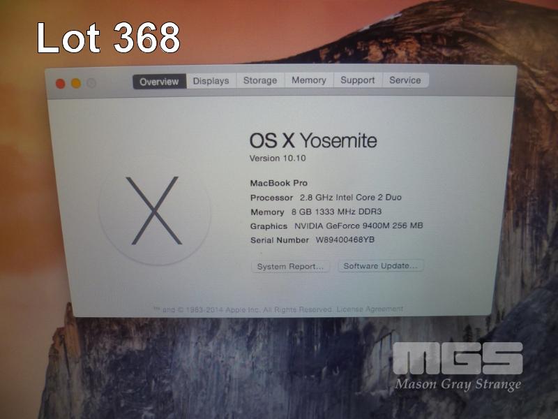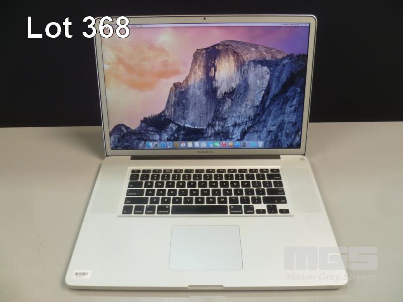 LAPTOP, APPLE MACBOOK PRO (A1297), CORE 2 DUO T9600 @ 2.8GHz, 8GB DDR3 RAM, 500GB SATA HDD, DVD-RW, 17" WIDESCREEN (1920x1200), 256MB NVIDIA GEFORCE 9400M VIDEO, Wi-Fi, MAC OS 10.10 INSTALLED & POWER SUPPLY S/N:W89400468YB