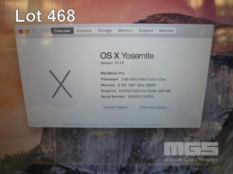 LAPTOP, APPLE MACBOOK PRO (A1278), CORE 2 DUO P8800 @ 2.66GHz, 8GB DDR3 RAM, 500GB SATA HDD, DVD-RW, 13.3" WIDESCREEN (1280x800), 256MB NVIDIA GEFORCE 320M VIDEO, Wi-Fi, MAC OS 10.10 INSTALLED & POWER SUPPLY S/N:W80291CVATQ