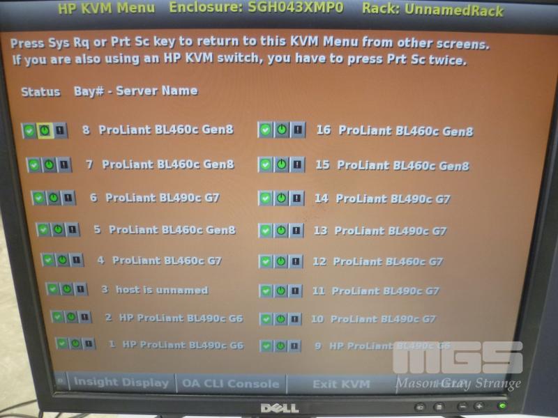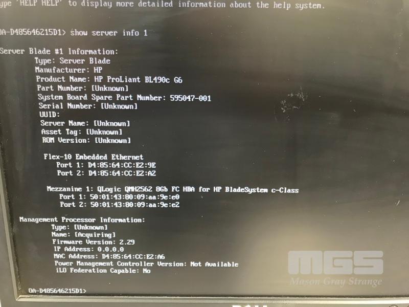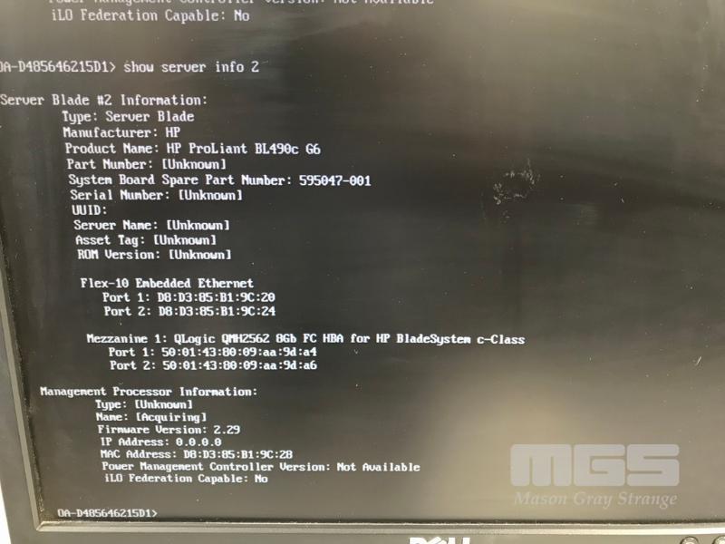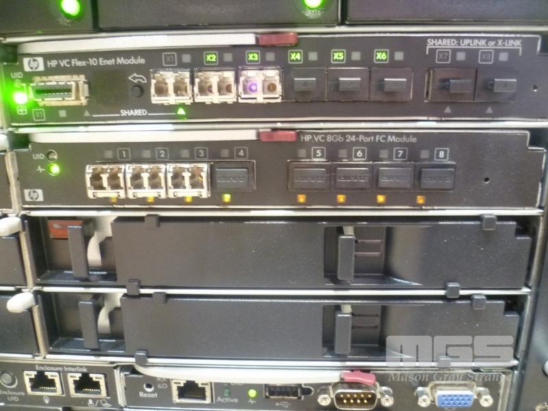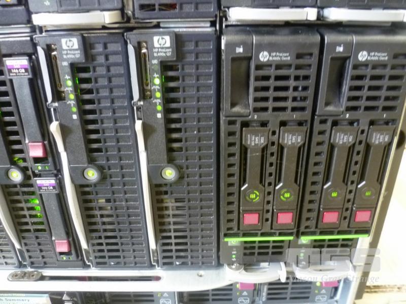 HP BLADESYSTEM c7000 ENCLOSURE G2 (507015-B21) WITH 16 x HP PROLIANT BLADE SERVERS 2 x HP VC 8Gb 24-PORT FC MODULES 2 x HP VC FLEX-10 ENET MODULES WITH RAILS & 15A EXTENSION CABLES #1 - HP PROLIANT BL490c G6, 2 x XEON X5670 @ 2.93GHz, 96GB RAM #2 - HP PROLIANT BL490c G6, 2 x XEON X5670 @ 2.93GHz, 96GB RAM #3 - HP PROLIANT BL460c G7, 2 x XEON X5670 @ 2.93GHz, 96GB RAM, 2 x 146GB HDD #4 - HP PROLIANT BL460c G7, 2 x XEON X5670 @ 2.93GHz, 96GB RAM, 2 x 146GB HDD #5 - HP PROLIANT BL460c GEN8, 2 x XEON E5-2670 @ 2.6GHz, 128GB RAM, 2 x 146GB HDD #6 - HP PROLIANT BL490c G7, 2 x XEON X5670 @ 2.93GHz, 108GB RAM #7 - HP PROLIANT BL460c GEN8, 2 x XEON E5-2670 @ 2.6GHz, 128GB RAM, 2 x 146GB HDD #8 - HP PROLIANT BL460c GEN8, 2 x XEON E5-2670 @ 2.6GHz, 128GB RAM, 2 x 146GB HDD #9 - HP PROLIANT BL490c G6, 2 x XEON X5670 @ 2.93GHz, 96GB RAM #10 - HP PROLIANT BL490c G7, 2 x XEON X5670 @ 2.93GHz, 96GB RAM #11 - HP PROLIANT BL490c G7, 2 x XEON X5670 @ 2.93GHz, 96GB RAM #12 - HP PROLIANT BL460c G7, 2 x XEON X5670 @ 2.93GHz, 96GB RAM, 2 x 146GB HDD #13 - HP PROLIANT BL490c G7, 2 x XEON X5670 @ 2.93GHz, 96GB RAM #14 - HP PROLIANT BL490c G7, 2 x XEON X5670 @ 2.93GHz, 108GB RAM #15 - HP PROLIANT BL460c GEN8, 2 x XEON E5-2670 @ 2.6GHz, 128GB RAM, 2 x 146GB HDD #16 - HP PROLIANT BL460c GEN8, 2 x XEON E5-2670 @ 2.6GHz, 128GB RAM, 2 x 146GB HDD EACH WITH QLOGIC QMH2562 / QMH2572 8Gb FC HBA (GEN8s WITH HP FLEXFABRIC 10Gb 2-PORT 554FLB ADAPTER) S/N:SGH043XMP0
