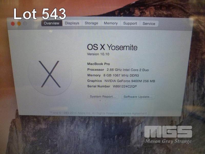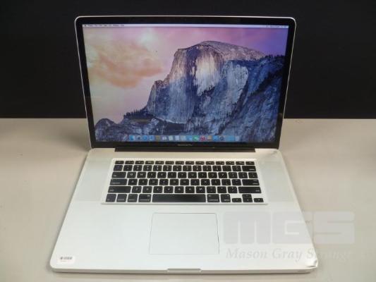 LAPTOP, APPLE MACBOOK PRO (A1297), CORE 2 DUO T9550 @ 2.66GHz, 8GB DDR3 RAM, 320GB SATA HDD, DVD-RW, 17" WIDESCREEN (1920x1200), 256MB NVIDIA GEFORCE 9400M VIDEO, Wi-Fi, MAC OS 10.10 INSTALLED (DAMAGE TO CASING) (NO POWER SUPPLY) S/N:W891224C2QP