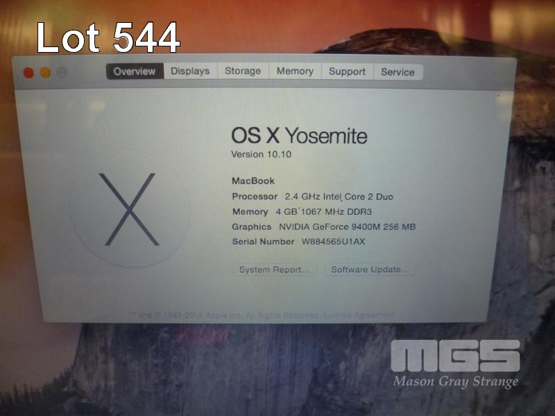 LAPTOP, APPLE MACBOOK (A1278), CORE 2 DUO P8600 @ 2.4GHz, 4GB DDR3 RAM, 250GB SATA HDD, DVD-RW, 13.3" WIDESCREEN (1280x800), 256MB NVIDIA GEFORCE 9400M VIDEO, Wi-Fi, MAC OS 10.10 INSTALLED (DAMAGE TO CASING / SCRATCHES) (NO POWER SUPPLY) S/N:W884564U1AX