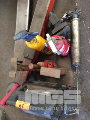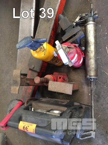 JUMP STARTER PACK, CHASSIS STANDS, BOTTLE JACK, 100mm VICE & GREASE PUMP