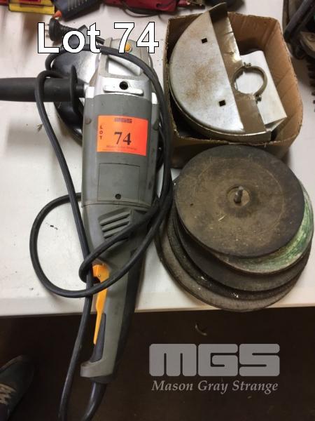 ANGLE GRINDER, ROCKWELL MOD: RD4769 230mm, 240V WITH ASSORTED DISCS