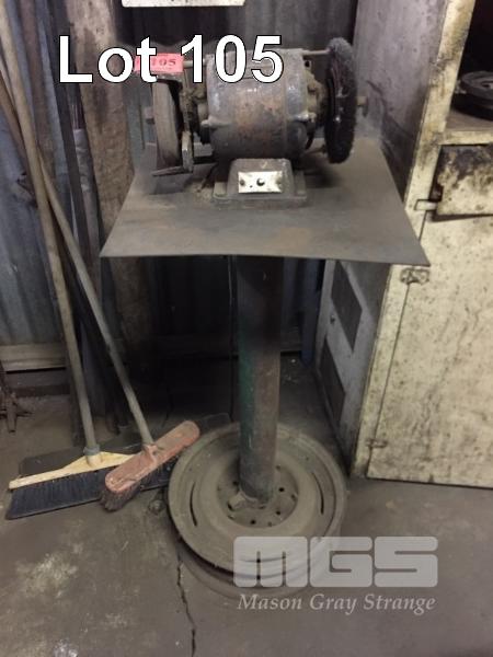 PEDESTAL GRINDER, HANDI TOOL, TWIN WHEEL ON FABRICATED STAND, 240V