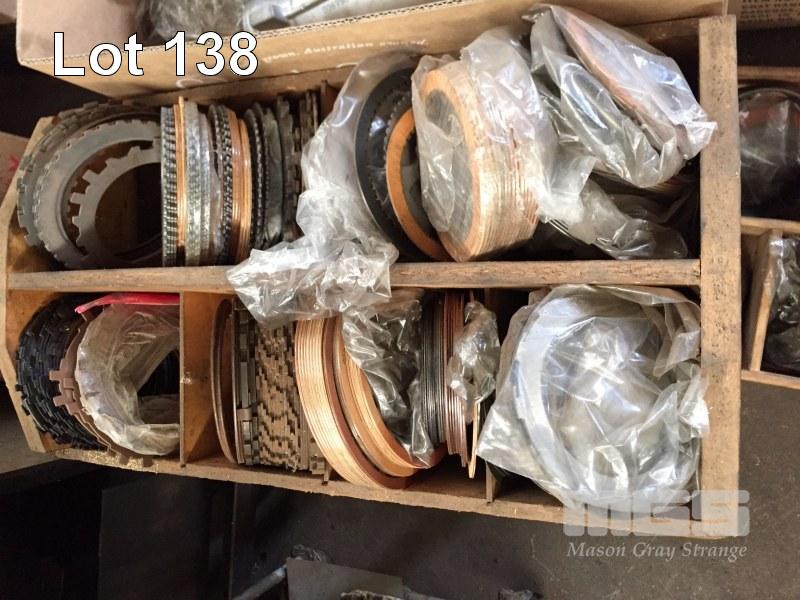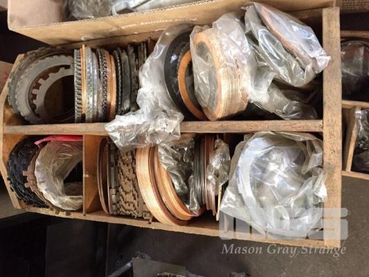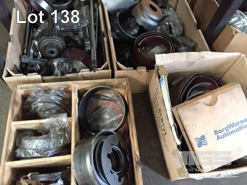 7 x BOXES ASSORTED AUTOMOTIVE TRANS COMPONENTS, BELTS, DRIVES, PLATES, GEARS, SEALS, ETC
