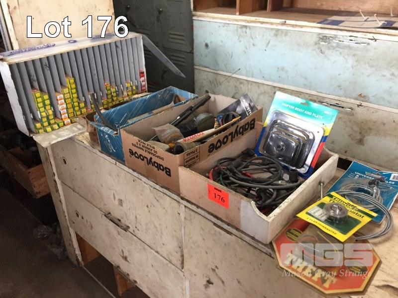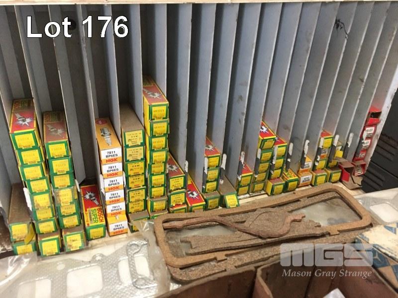 LARGE QUANTITY ASSORTED SPARK PLUGS, CABLES, GASKETS, ETC, (CONTENTS SHELVES)