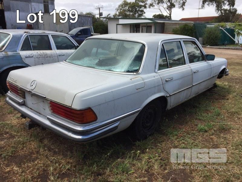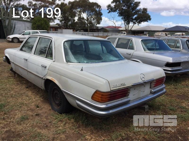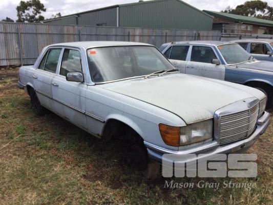 1977 MERCEDES BENZ 280 SE SALOON WITH ENGINE & RUNNING GEAR, NO FRONT WHEELS, WRECKING ONLY, NO REG PLATES