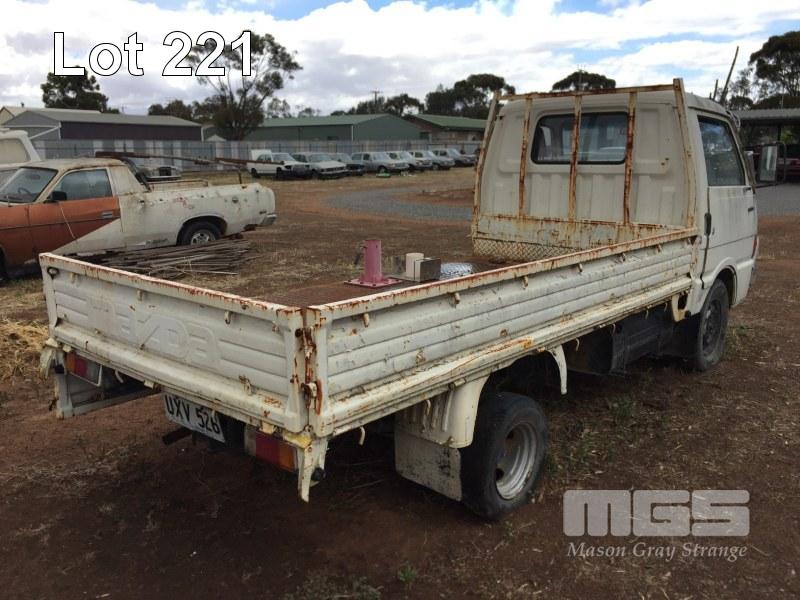 1985 MAZDA E200 SINGLE CAB TRAYTOP TRUCK REG: UXV 526 VIN: SDYUE1501741 ENG: 4D31374701 ODO: 355,948kms SHOWING GVM: 6,000kg GCM: 6,000kg 4 CYLINDER, MANUAL TRANSMISSION, PETROL, 3.15m TRAY, CHECKER PLATE STEEL WITH FOLDING SIDES, ALL FAULTS (NO PAPERS, NO OWNER'S MANUAL, NO SERVICE BOOKS)