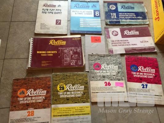 9 x RELLIM SPEC CHART MANUALS, WIRING FLAT RATE TIME CHARTS, ETC