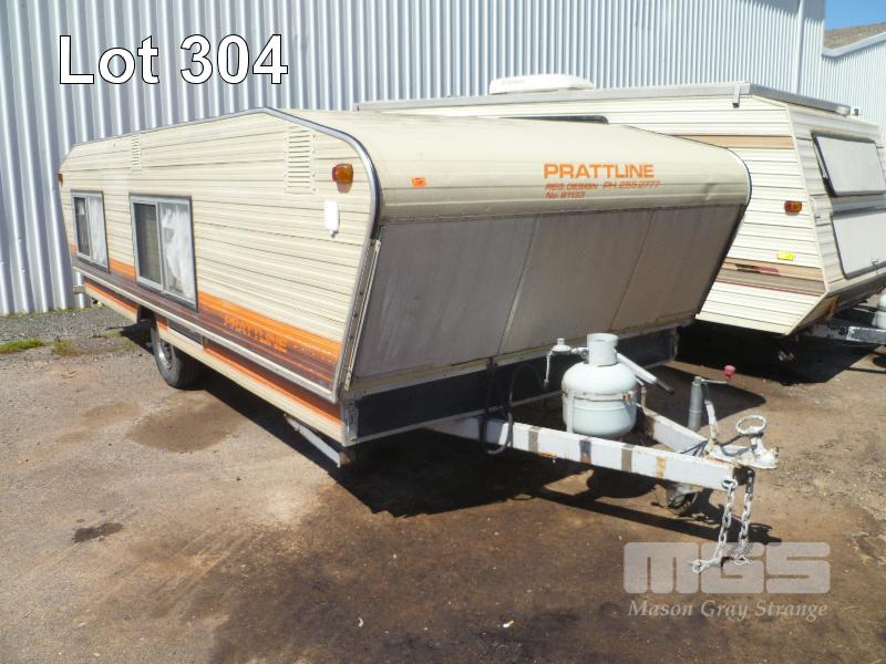 1986 PRATTLINE LOWTOW 18 FOOT CARAVAN REG: TKK590 (SA) (EXPIRED) VIN: 6121226 1 DOORS, 6 SEAT, SPARE WHEEL, GAS/12VOLT FRIDGE, LPG STOVE , HYDRAULIC ROOF LIFT, CLOCK RADIO, GAS CYLINDER , ISLAND BENCH. (WITH PAPERS, WITH OWNER'S MANUAL, NO SERVICE BOOKS) CONDITION: PASSENGER SIDE - WATER DAMAGE TO INSIDE UPPER LINING DRIVERS SIDE - SMALL DENTS AND SCRATCHES HYDRAULIC LIFT PUMP - MINOR LEAK WHEN PUMPING