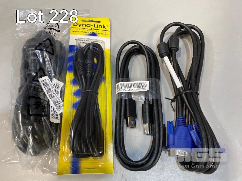 QTY ASST NEW CABLES INC. 10 x DVI, 10 x VGA, 10 x USB 3.0, 10 x AUDIO 3.5mm