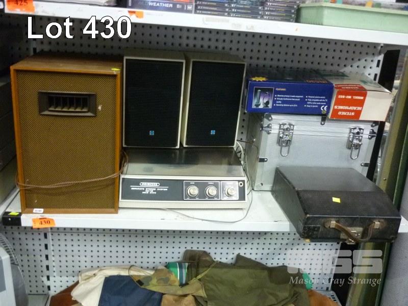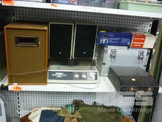 PRINCESS TURNTABLE, SE-10, SPEAKERS, VINTAGE REMINGTON PORTABLE TYPEWRITER, ALUMINIUM CARRY CASE & HEADPHONES