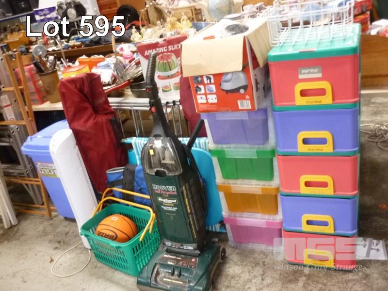 HOOVER UPRIGHT VACUUM, VERTICAL FAN, CLOTHES AIRER, OUTDOOR CHAIRS, ETC
