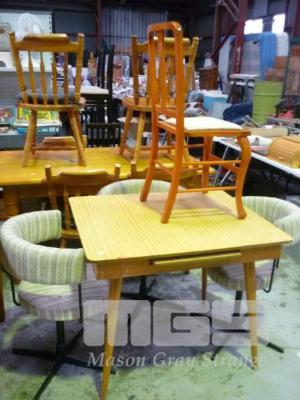 DINING SUITE, RETRO EXTENDING TABLE WITH 3 x UPHOLSTERED SWIVEL DINING CHAIRS