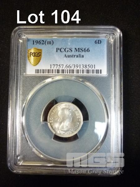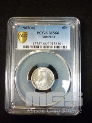 1962 AUST SIXPENCE PROFESSIONALLY GRADED 66 GEM UNC