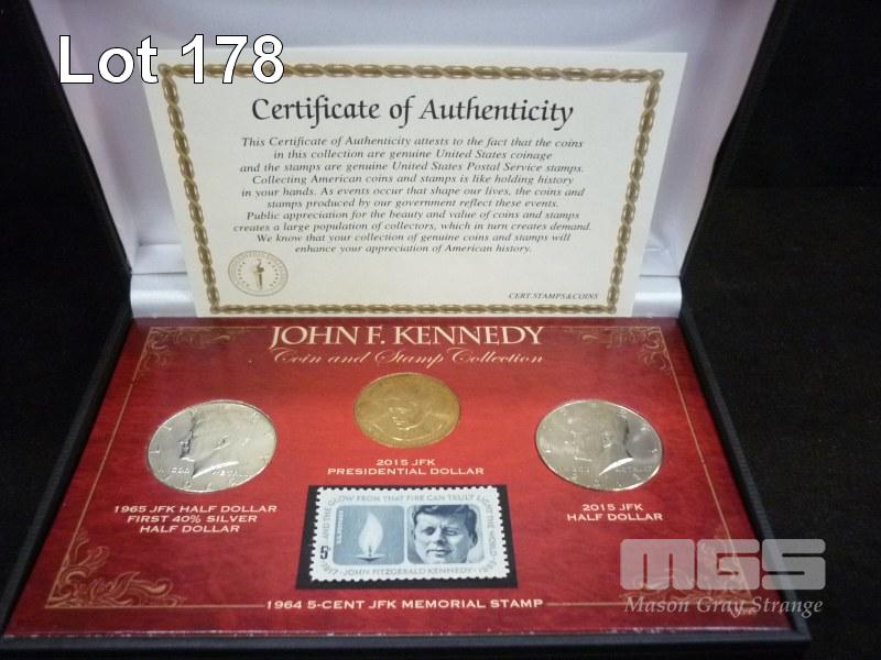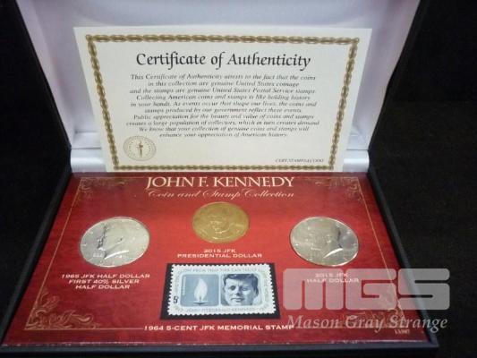 JF KENNEDY COINS & STAMP IN AMERICAN COIN TREASURE BOX UNC