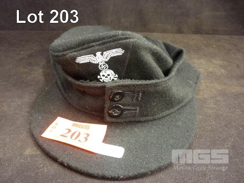 M43 BLACK PANZER CAP WITH TRAPAZOID SS INSIGNIA, EUROPEAN MADE REPRODUCTION OF THE "DACHAU" CAPS