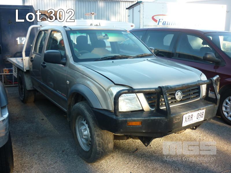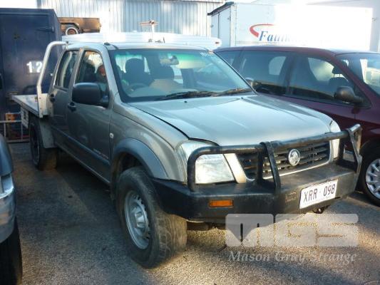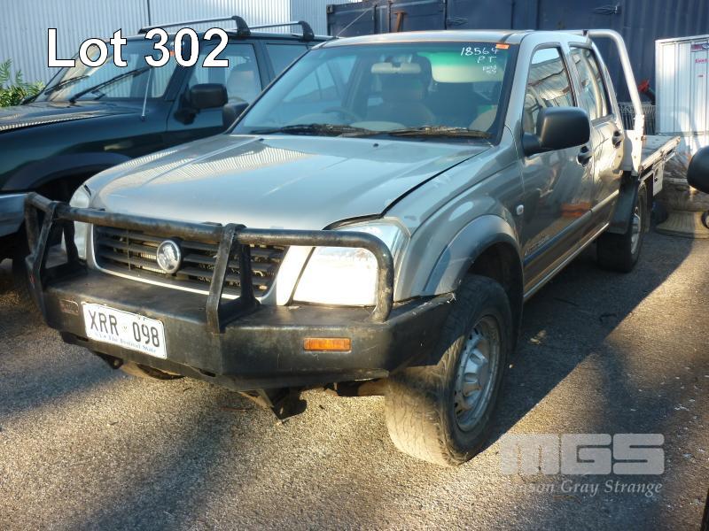 2003 HOLDEN RODEO UTILITY TRAY TOP REG: XRR 098 (SA) (EXPIRED) VIN: MPATFS77J3T102077 ODO: 358,838 3 LTR 4 CYLINDER, 5 SPEED MANUAL, DIESEL TURBO, METALIC GREEN, 4 DOORS, 5 SEAT, AIR CON, ALLOY TRAY, BULL BAR, CD PLAYER, CENTRAL LOCKING, POWER STEERING, SPARE WHEEL, TOOL BOX, TOW BAR, PAIR OF ALLOY UNDER TRAY TOOL BOXES (NO PAPERS, WITH 1 KEY/S, NO OWNER'S MANUAL, NO SERVICE BOOKS) CONDITION: BODY - MINOR DENTS & SCRATCHES INTERIOR - DIRTY & WORN ENGINE - TURNING OVER BUT NOT FIRING