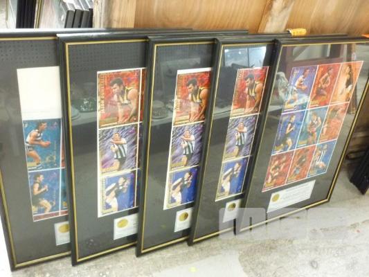 5 X FRAMED & SIGNED FOOTBALL QUARTERS UNCUT COLLECTOR CARDS