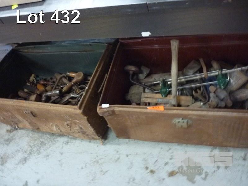 2 x VINTAGE METAL TRUNKS WITH ASSORTED HAND TOOLS