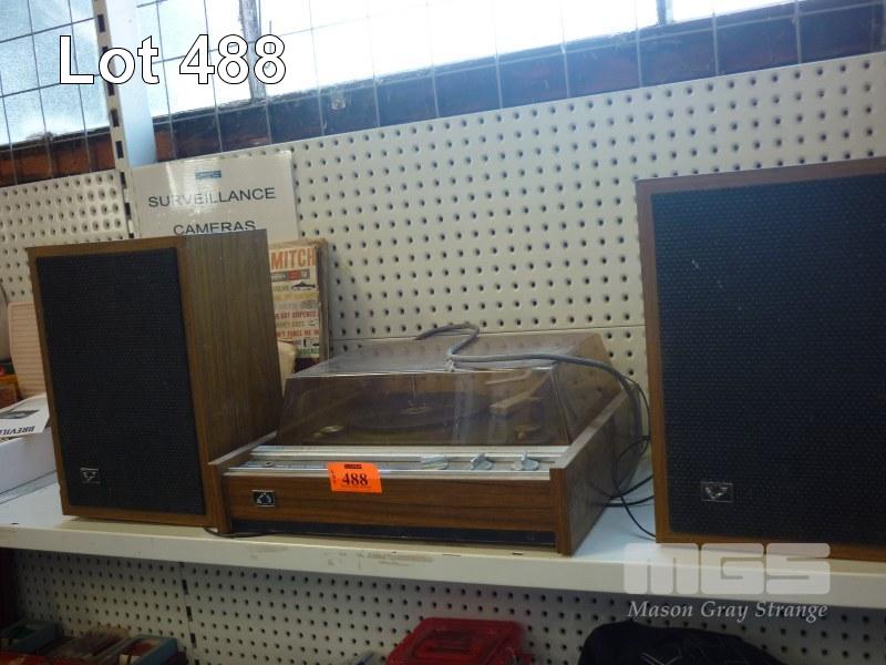 HMV TURNTABLE WITH SPEAKERS & VINYL RECORDS MODEL TR10