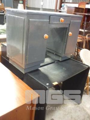 BLACK MOBILE STUDENTS DESK, RETURN & GREY PAINTED TIMBER CHILDRENS DESK