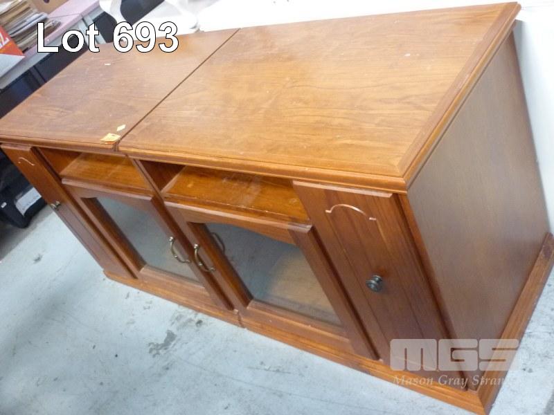 2 PINE CABINETS WITH PULL OUT DVD STORAGE