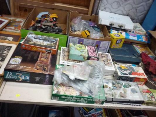 ASSORTED BOARD GAMES, DART BOARD, TOYS, ETC 1 x TABLE