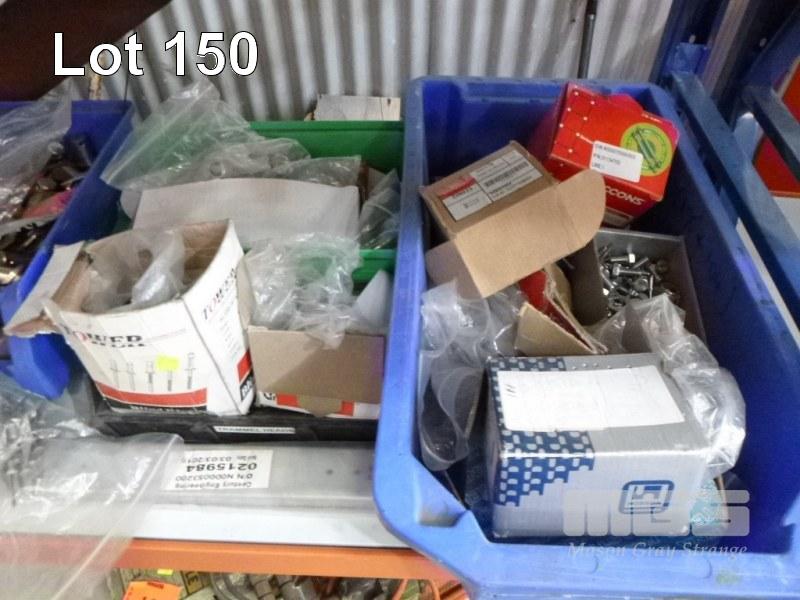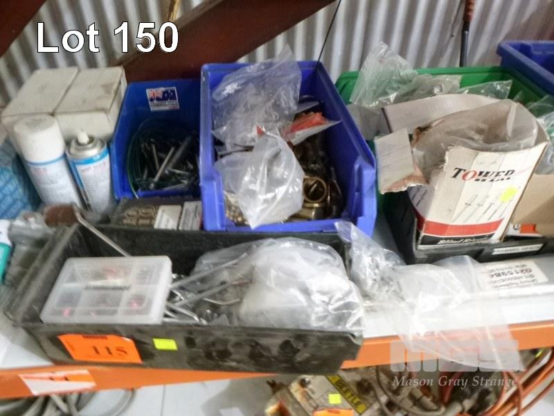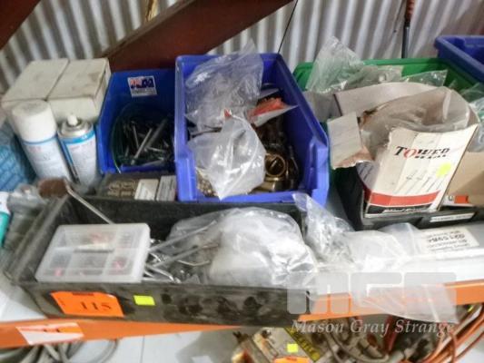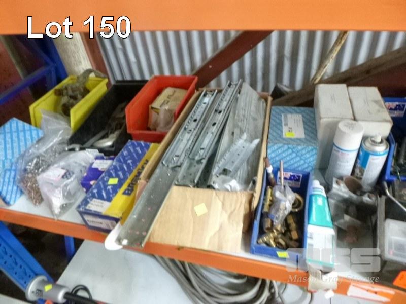 ASSORTED FASTENERS, PIPE FITTINGS, DRAWER SLIDES, PINS, ETC, 1 x SHELF