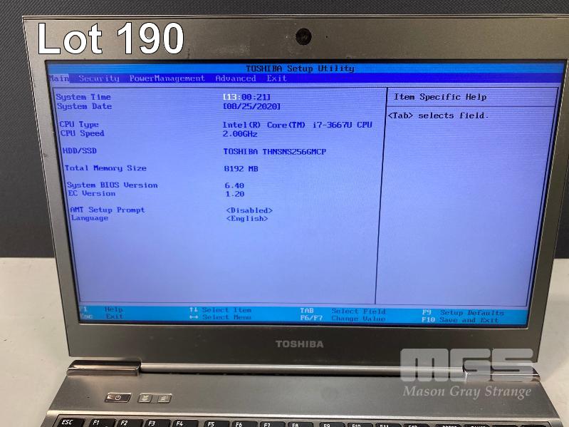 LAPTOP, TOSHIBA ULTRABOOK PORTEGE Z930 (PT235A-03104X01), CORE i7 3667U (3RD GEN) @ 2GHz, 8GB DDR3 RAM, 256GB SSD, 13.3" WIDESCREEN (1366x768), Wi-Fi, BLUETOOTH, WINDOWS 8 PRO INSTALLED & POWER SUPPLY S/N:XC148665H