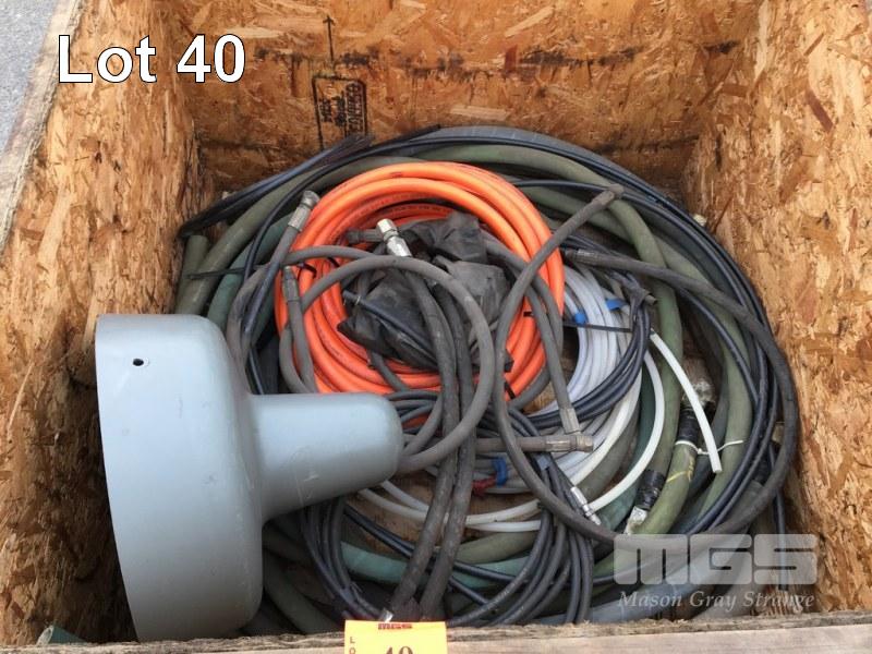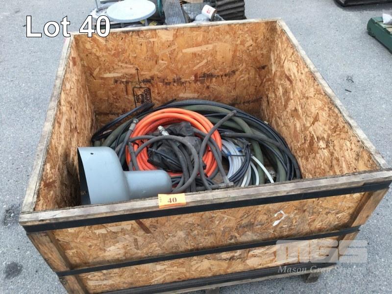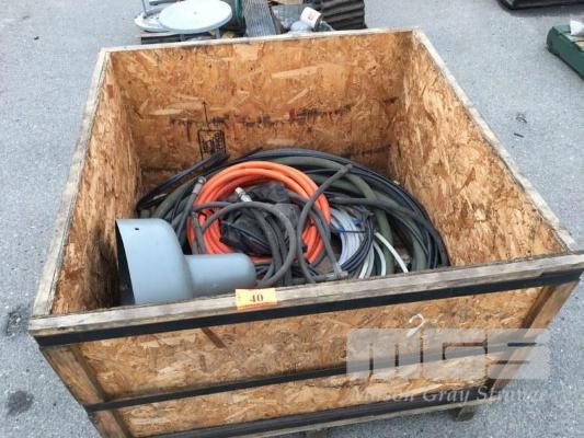 1 x CRATE ASSORTED AIR LINE & HOSES, AIR & HYDRAULIC & PARTS FILTERS, VACUUM PUMP, ELEC MOTOR, PULLEY & BEARINGS