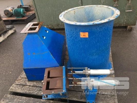 SMALL DUAL SECTION HOPPER WITH PNEUMATIC SLIDE CLOSING 700 X 430 x 550mm & 500mm ROUND PRODUCT FEED TUBE
