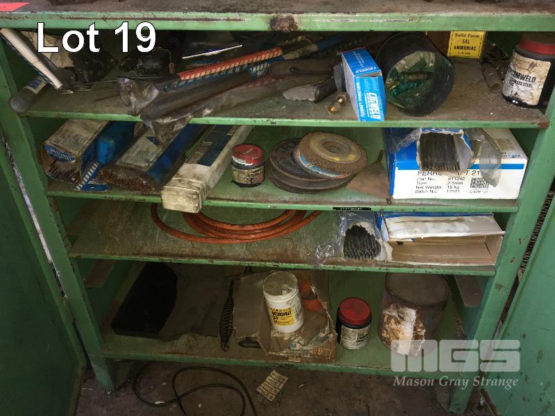 STEEL 2 DOOR STOCK CUPBOARD, 100 x 60 x 93cm WITH ARC WELDING RODS, BRAZING FLUX & RODS (CUPBOARD & CONTENTS)