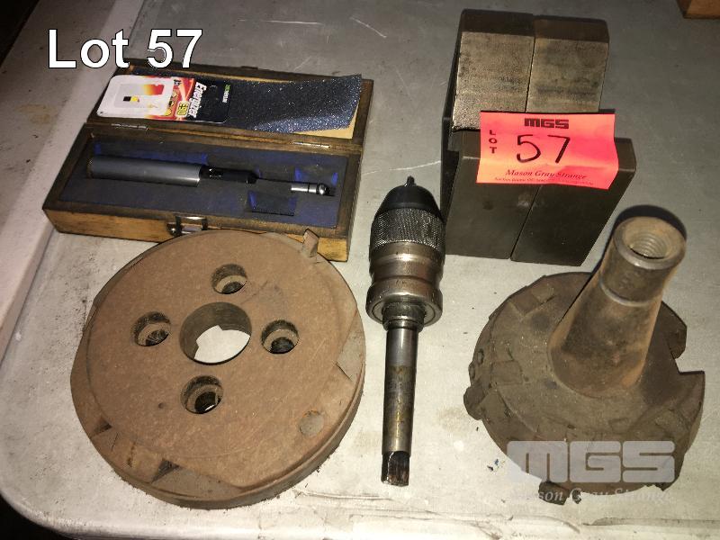2 x CAST IRON VEE BLOCKS, 2 x FACE CUTTERS, KEYLESS 16mm CHUCK & ARBOR No2