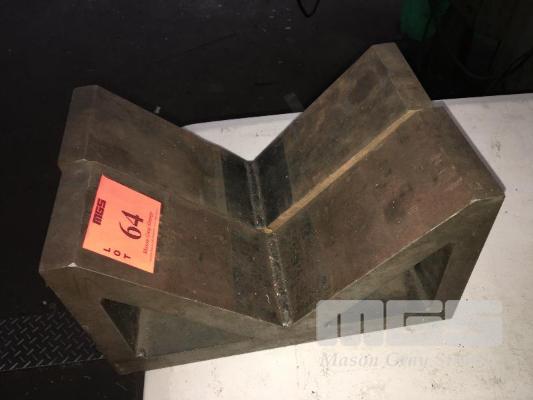 PAIR LARGE FABRICATED STEEL VEE BLOCKS, 29 x 10 x 15cm
