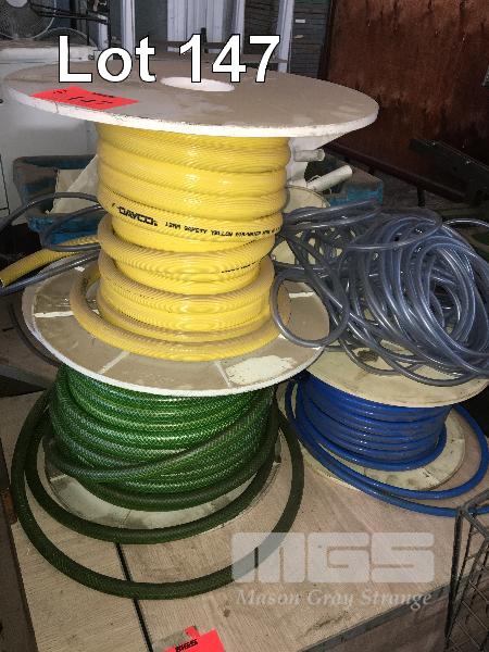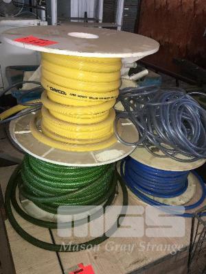 ASSORTED AIR HOSE, YELLOW, GREEN, BLUE & CLEAR & RONSTAN SHELVES, COIL & FIBREGLASS TWINE, BRACKETS, ETC