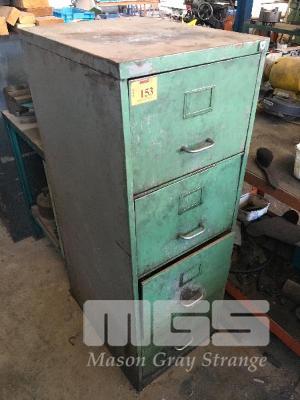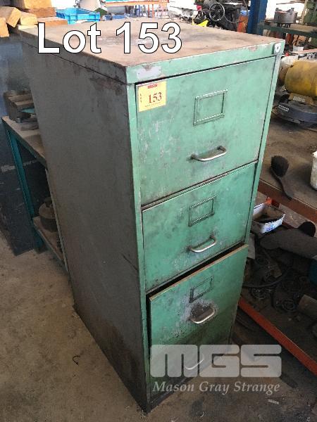 STEEL 4 DRAWER FILING CABINET & CONTENTS, CHAINS, SHACKLES, WIRE ROPE SLING, SOFT SLINGS, STEEL BARS
