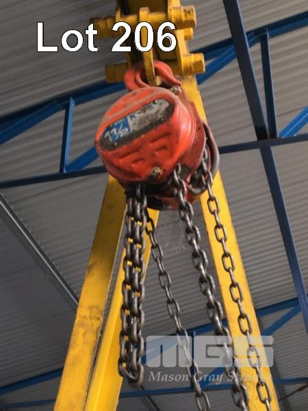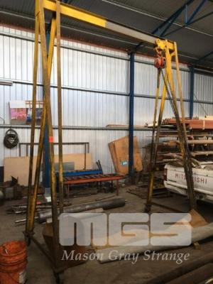 FABRICATED GANTRY CRANE A-FRAME, MOBILE WITH CHAIN HOIST & TRAVEL BEAM TROLLEY, 1.5 TONNE 2760 x 1300 x 3550mm (H)