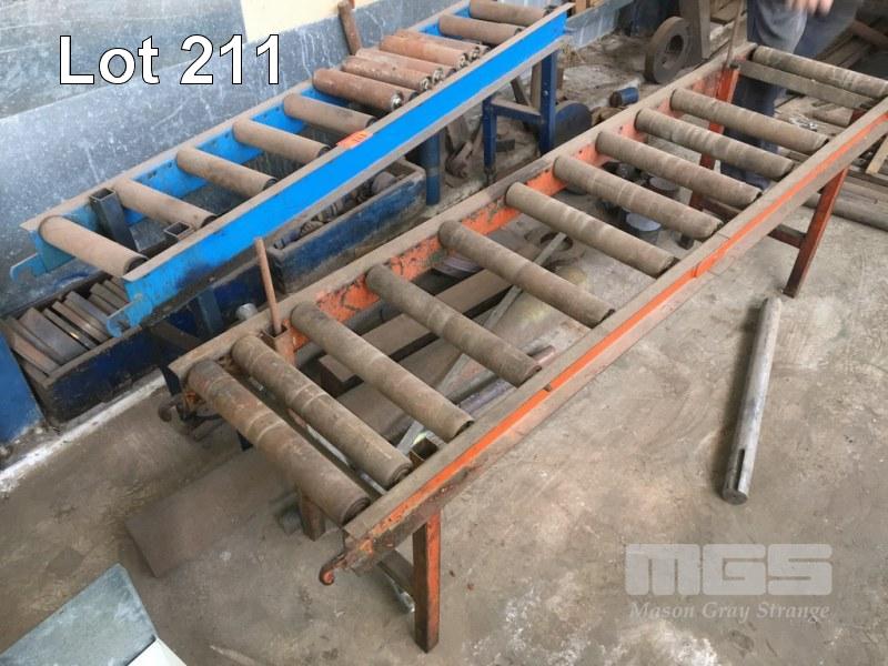2 x ROLLER CONVEYOR STANDS, STEEL, 430 x 1770 x 560mm (H) & 300 x 1500 x 630mm (H)