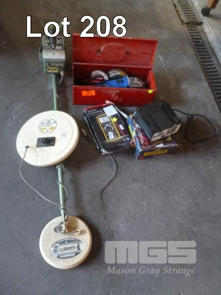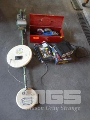 GARRETT METAL DETECTOR, GRINDER, BATTERY CHARGER & DIGITAL MULTI METER