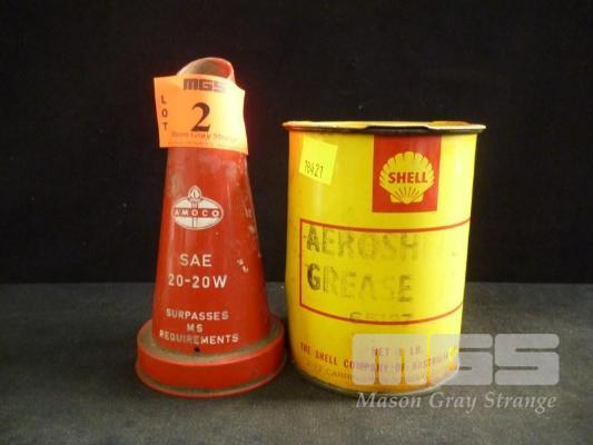 SHELL GREASE TIN & AMOCO PLASTIC OIL BOTTLE TOP