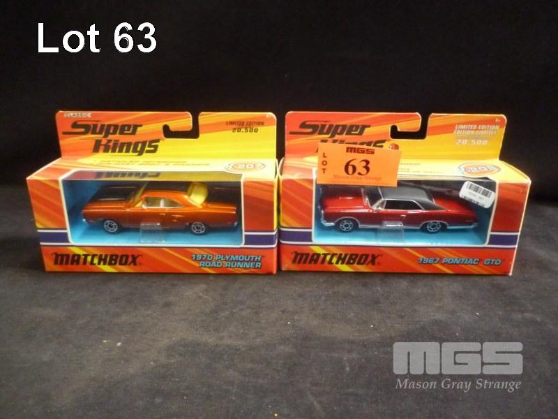 2 x MATCHBOX SUPER KINGS IN THERE BOXES, 1970 PLYMOUTH ROAD RUNNER, 1967 PONTIAC GTO
