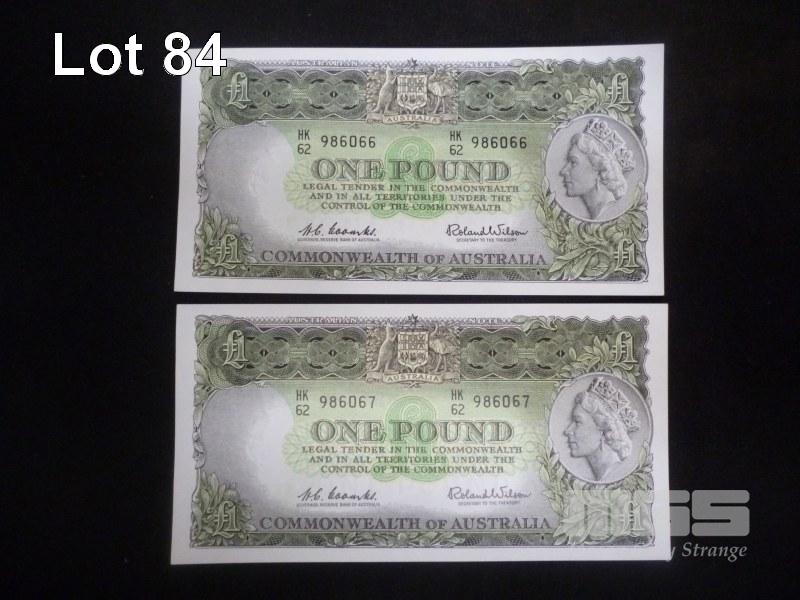 1960 2 x 1 POUND NOTE CONSECUTIVE X RARE COIN COMPANY UNC