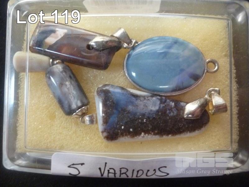 5 X ASSORTED SOLID OPAL PENDANTS, STERLING SILVER CLASPS