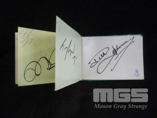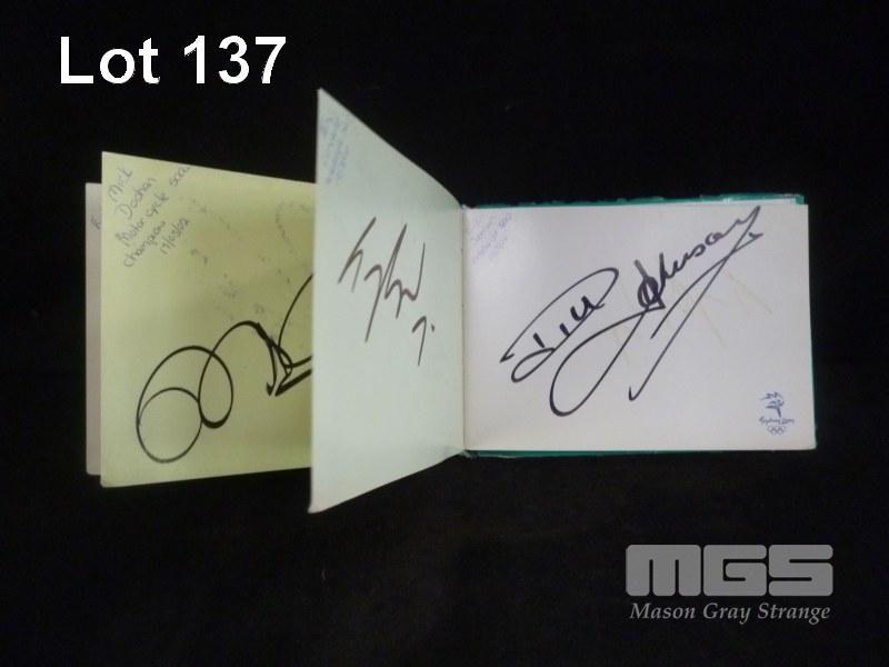 AUTOGRAPH BOOK WITH VARIOUS MOTOR SPORTS ATHLETES, MARK SKAIFE, CRAIG LOWNDES, RUSSELL INGALL, ALLAN MOFFAT, MICK DOOHAN ETC