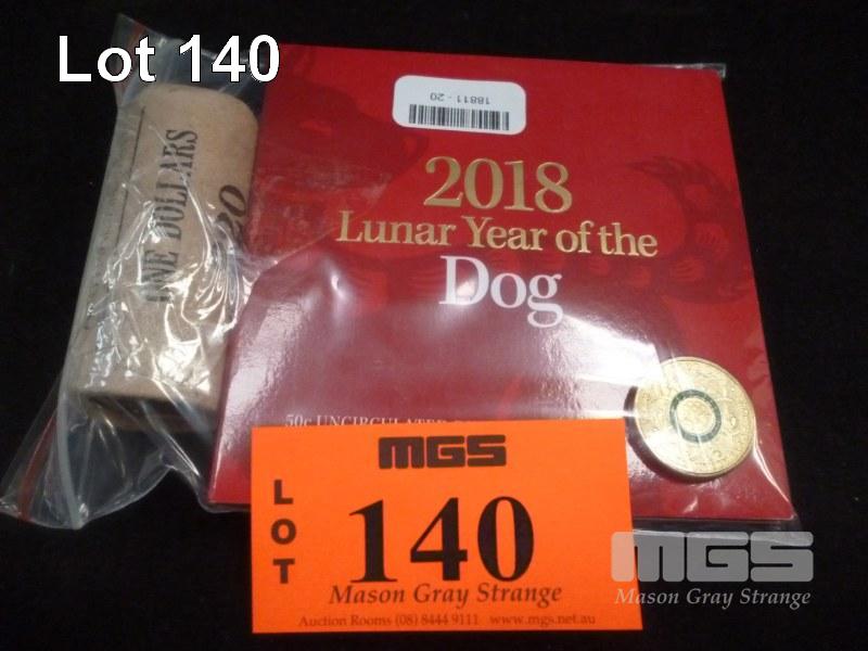 COLOURED $2 COINS, INCLUDING LEST WE FORGOT ETERNAL FLAME, 2018 LUNAR YEAR OF THE DAY 50 CENT COIN & 1984 RAM MINT ROLL $1 COINS